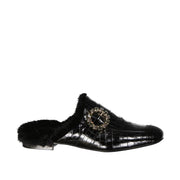 Eleventy Leather Fur Mules - Black / 37